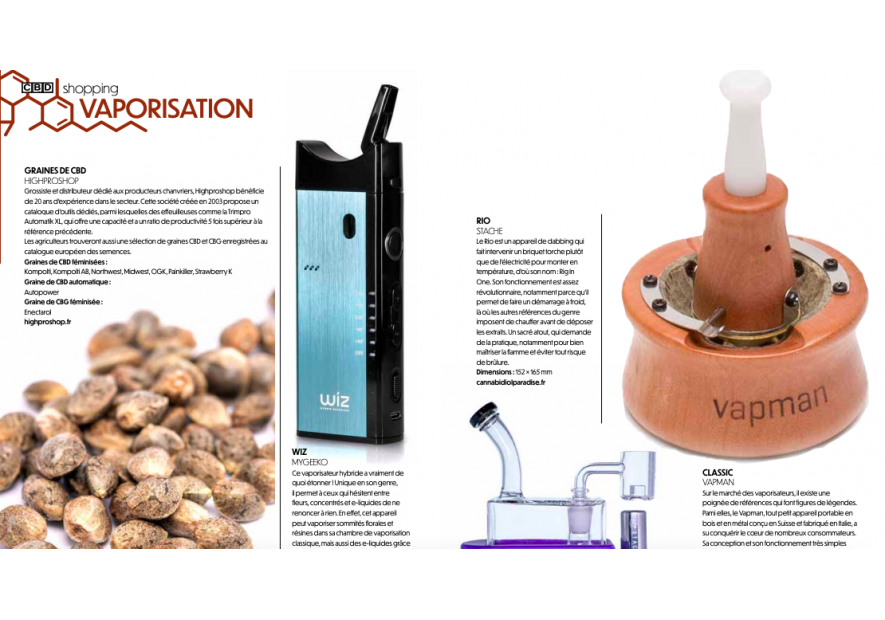 Nous tenons à remercier chaleureusement CBD Magazine pour la parution spontanée de notre Wiz Hybrid Vaporizer dans leur numéro 7, page 65.
